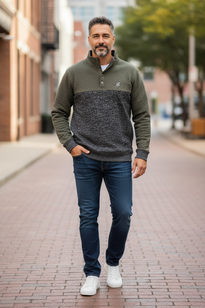 Stevie Pullover in Charcoal and Quilted Accents