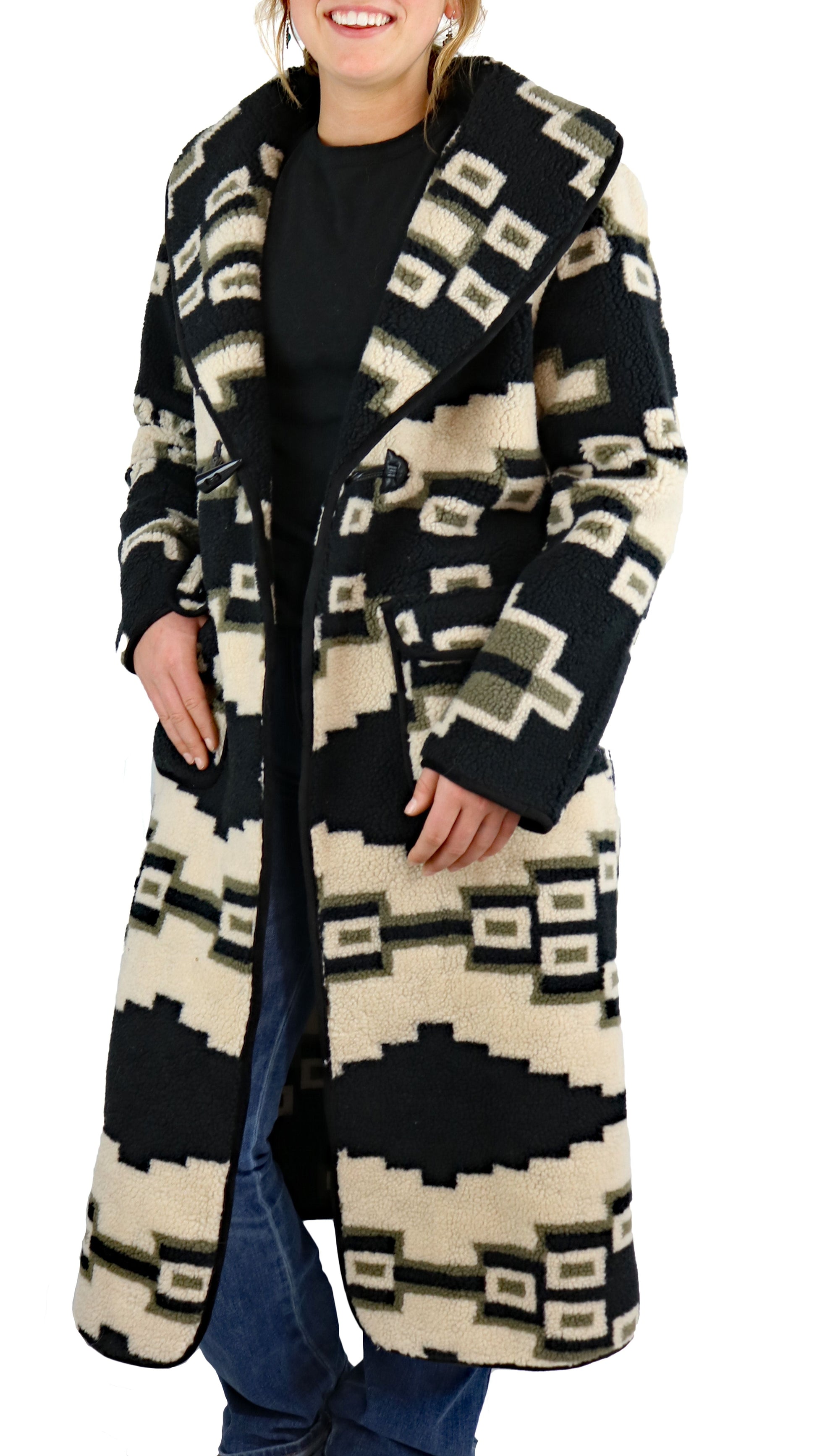 Black and cream Southwestern pattern Sherpa with black elastic binding