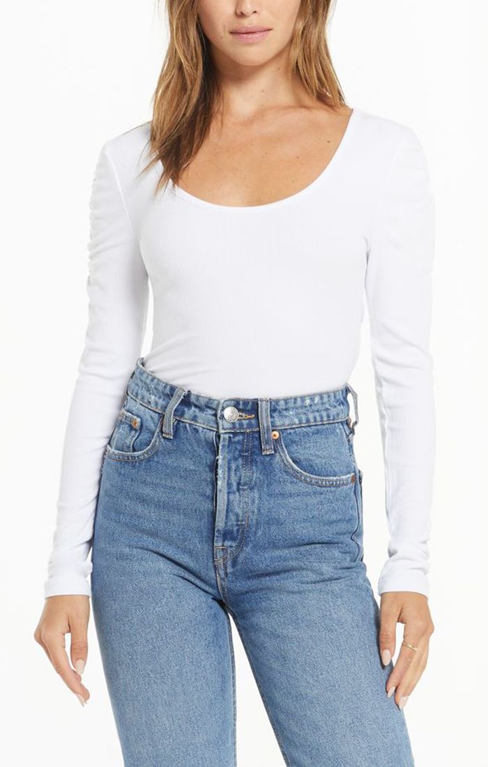Vivian Scoop Neck Long Sleeve Top In White By Z Supply ZT213306