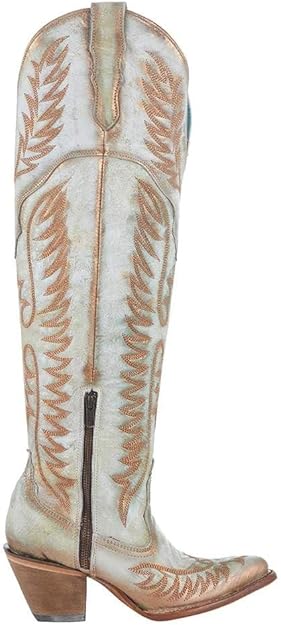 The Corral Women's Embroidery Tall Top Western Boots have pig lining and a Goodyear Welt construction.